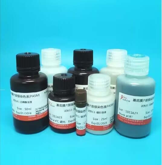 另外,銀染法也較常用。當(dāng)組織塊浸入硝酸銀溶液中時,有的組織結(jié)構(gòu)能直接把硝酸銀還原,使銀粒附于其上,呈棕黑色或棕黃色。有些結(jié)構(gòu)本身對硝酸銀無直接還原能力,若加入還原劑,可使硝酸銀還原沉淀顯色。