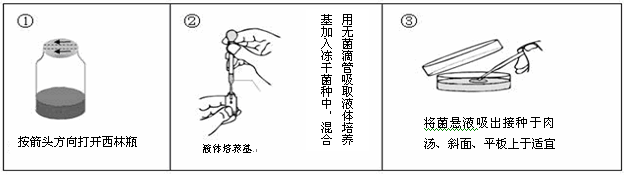 2-1、用無菌吸管,吸取0.3-0.4ml適宜的液體培養(yǎng)基,滴入安瓿管內(nèi),輕輕振 蕩,使凍干菌體溶解呈懸浮狀。