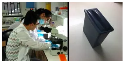 (左) CST技術(shù)人員與馬同學(xué)共同討論實(shí)驗(yàn)。(右)本次實(shí)驗(yàn)使用的修復(fù)缸