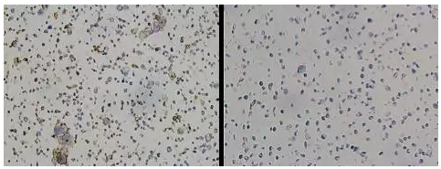 18. 將顯色液滴加于切片上,于顯微鏡(10倍目鏡)下觀察染色情況,待看到棕黃色陽(yáng)性沉積,且背景不深時(shí),將切片浸沒于ddH2O中,終止染色。