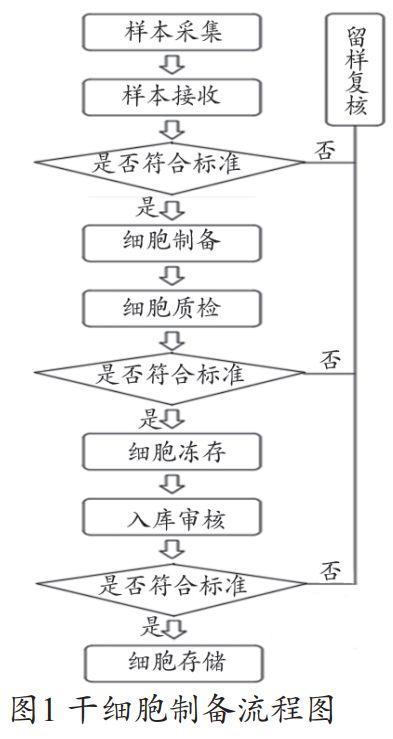 二、干細胞實驗室的功能設(shè)計干細胞的工作流程,如圖1所示,主要分為干細胞的制備、質(zhì)檢及存儲。其中干細胞的質(zhì)檢管理又包括無菌檢測、致病因子檢測、培養(yǎng)基殘余量檢查等。