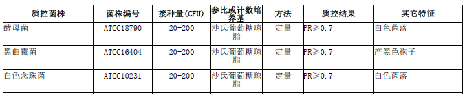 按標(biāo)簽用法制備培養(yǎng)基,接種以下質(zhì)控菌株,放置28±1℃需氧培養(yǎng)48-96小時(shí)。
