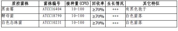 按標(biāo)簽用法制備培養(yǎng)基,接種以下質(zhì)控菌株,放置25℃需氧培養(yǎng)120小時(shí)。