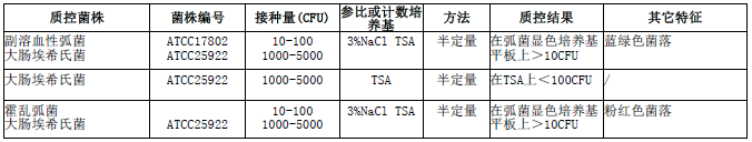 按標(biāo)簽用法制備培養(yǎng)基,接種以下質(zhì)控菌株,放置36±1℃需氧培養(yǎng)8小時。