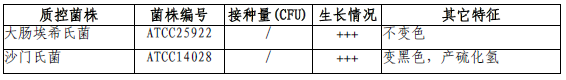 按標(biāo)簽用法制備培養(yǎng)基,接種以下質(zhì)控菌株,放置36±1℃需氧培養(yǎng)22-26小時(shí)。