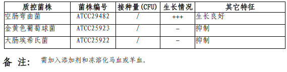 按標簽用法制備培養(yǎng)基,接種以下質(zhì)控菌株,放置36±1℃需氧培養(yǎng)24-48小時。