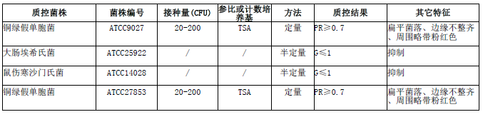 按標(biāo)簽用法制備培養(yǎng)基,接種以下質(zhì)控菌株,放置36±1℃需氧培養(yǎng)24±2小時。