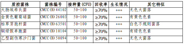 按標簽用法制備培養(yǎng)基,接種以下質(zhì)控菌株,放置30-35℃需氧培養(yǎng)18-24小時。