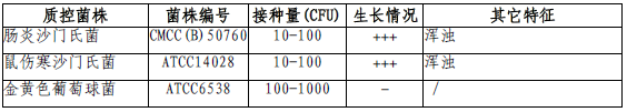 按標(biāo)簽用法制備培養(yǎng)基,接種以下質(zhì)控菌株,放置30-35℃需氧培養(yǎng)18-24小時。