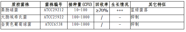 按標(biāo)簽用法制備培養(yǎng)基,接種以下質(zhì)控菌株,放置36±1℃需氧培養(yǎng)24-48小時(shí)。