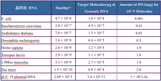 表1. 基因組大小和分子數(shù)目的比例