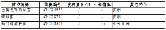 按標簽用法制備培養(yǎng)基,接種以下質控菌株,放置36±1℃微需氧培養(yǎng)72-96小時。